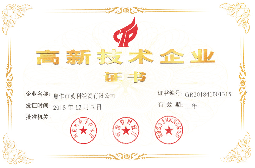 高新技術(shù)企業(yè)證書(shū)